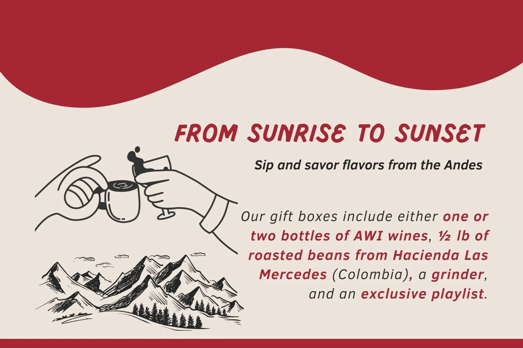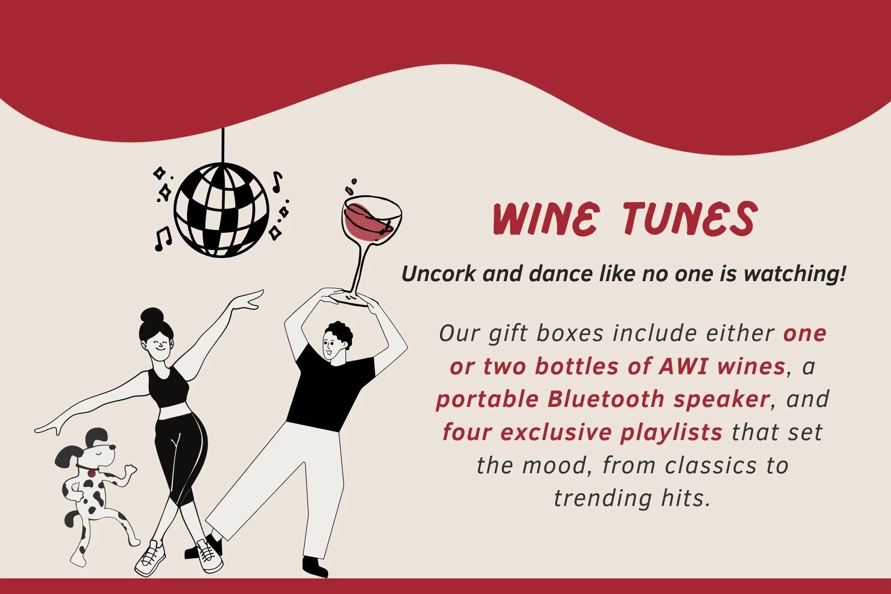 This season, choose between AWI Tunes and From Sunrise to Sunset, two curated boxes that pair our wines with meaning, mood, and a touch of celebration. Thoughtful, memorable, and perfect for ending the year with a toast.